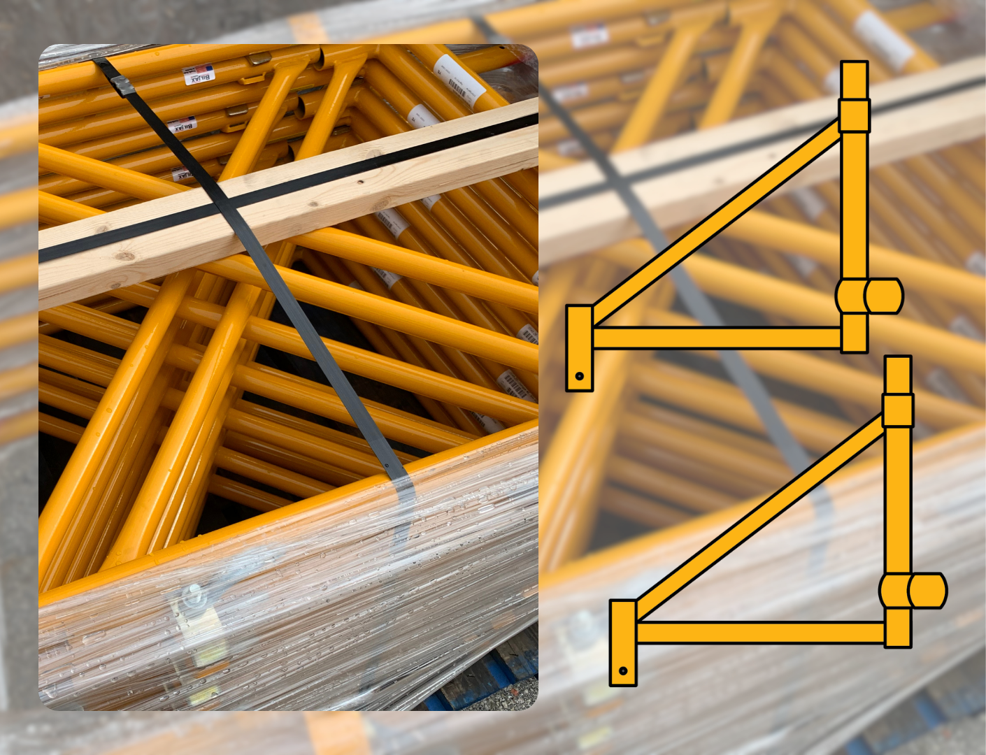 Metal attachments which make the base of a scaffold wider, typically used to provide stability to supported scaffolds who exceed the 4:1 Base Ratio. These allow a scaffold to go above that height-to-base ratio because it offers kickout protection as long as you follow the proper guidelines. Can be used with casters and screwjacks.